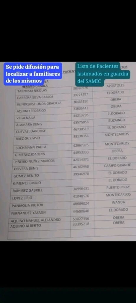 En el micro viajaba Alamara Denis, quien según el informe es oriundo de la ciudad de Ituzaingo, quien se encuentra en la guardia del hopital SAMIC de Oberá a la espera de algun familiar