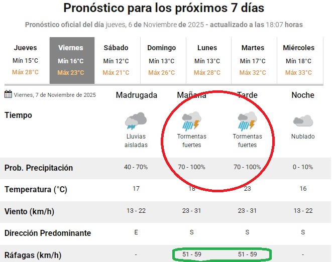 Duranteel día viernes, distintos sistemas de baja presión en altura generarán lluvias y tormentas en amplias zonas del país. Algunas podrán ser localmente fuertes o severas, con granizo, ráfagas intensas y elevados acumulados de lluvia.